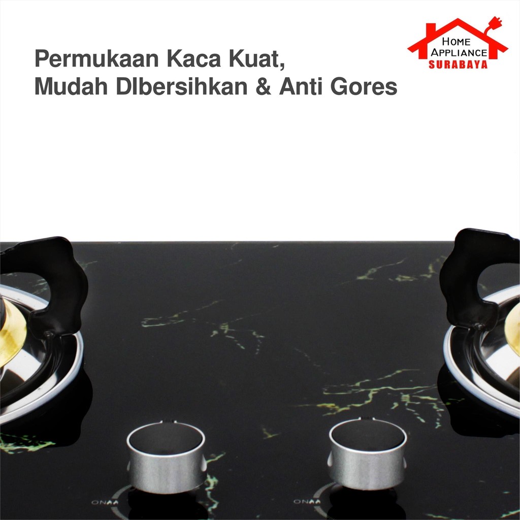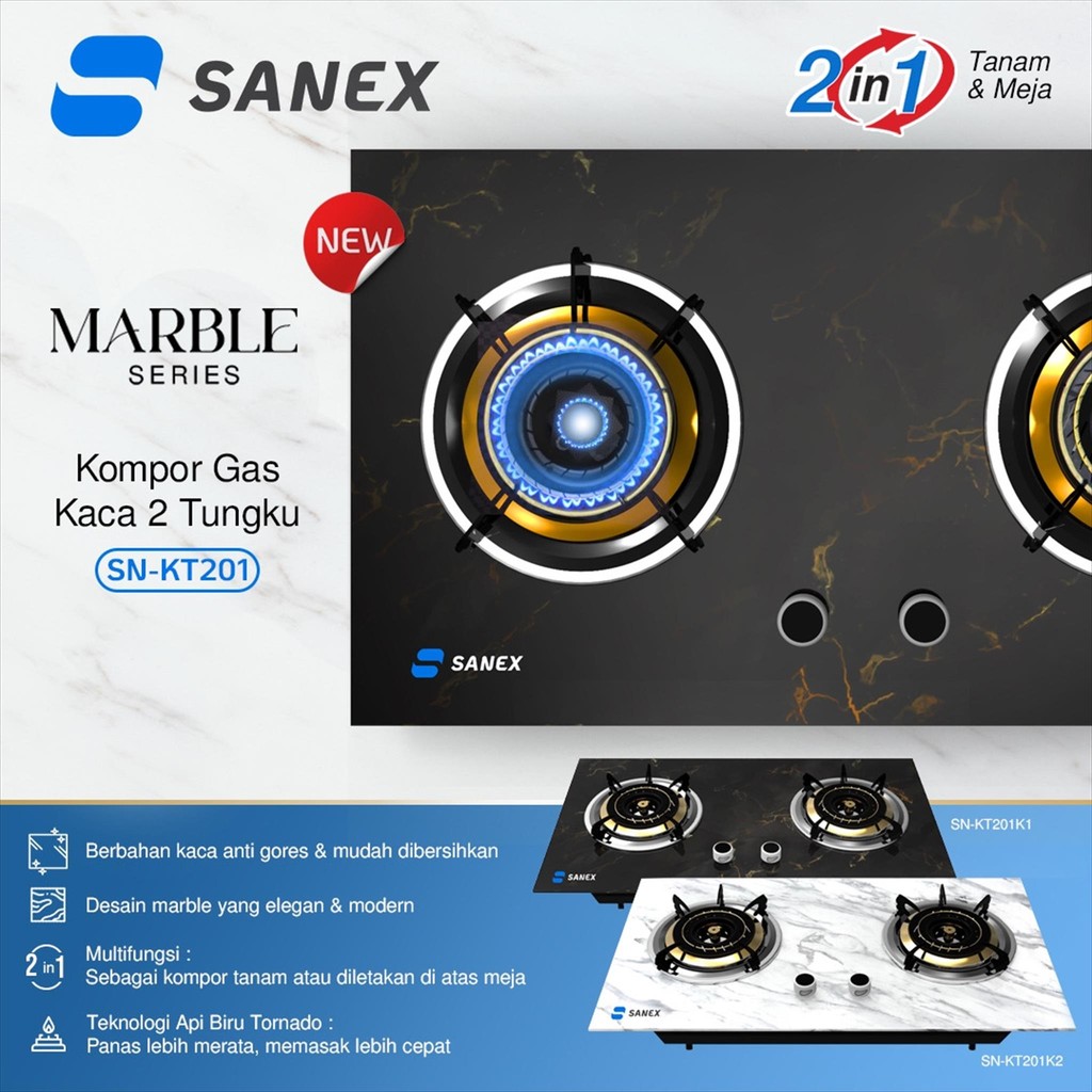 SANEX Kompor Kaca Gas Tanam 2 Tungku 2 IN 1 Motif Marble SN-KT201 / SN KT 201 K1 - K2 Anti Gores