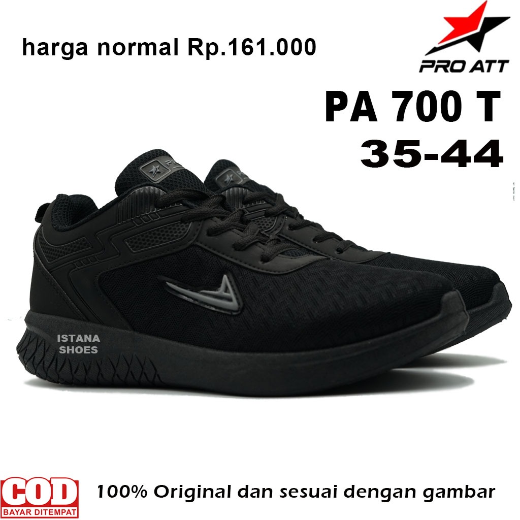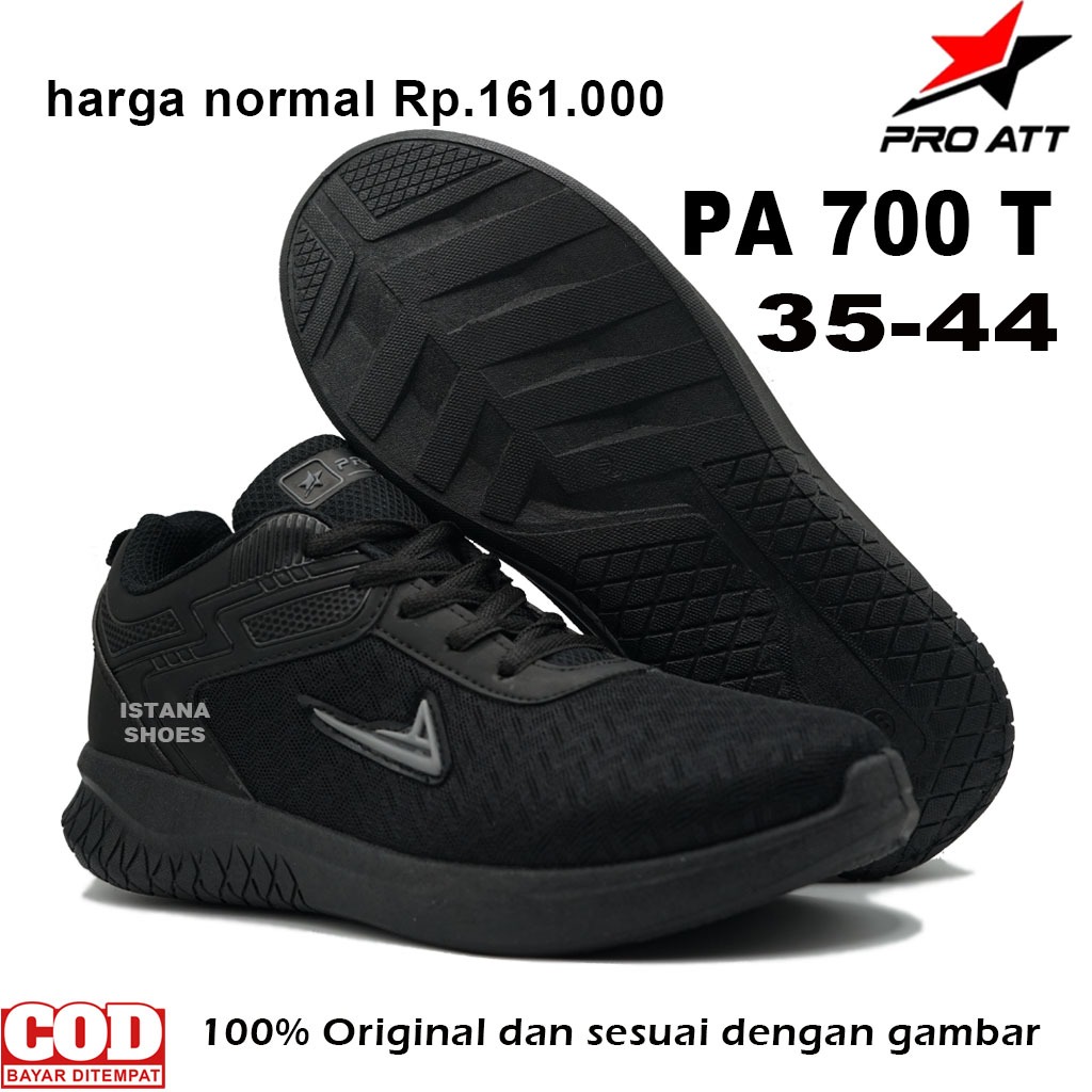 Sepatu Sekolah Anak Laki Laki Perempuan SD SMP SMA REMAJA DEWASA PRO ATT PA 700 T Full Hitam Sneakers