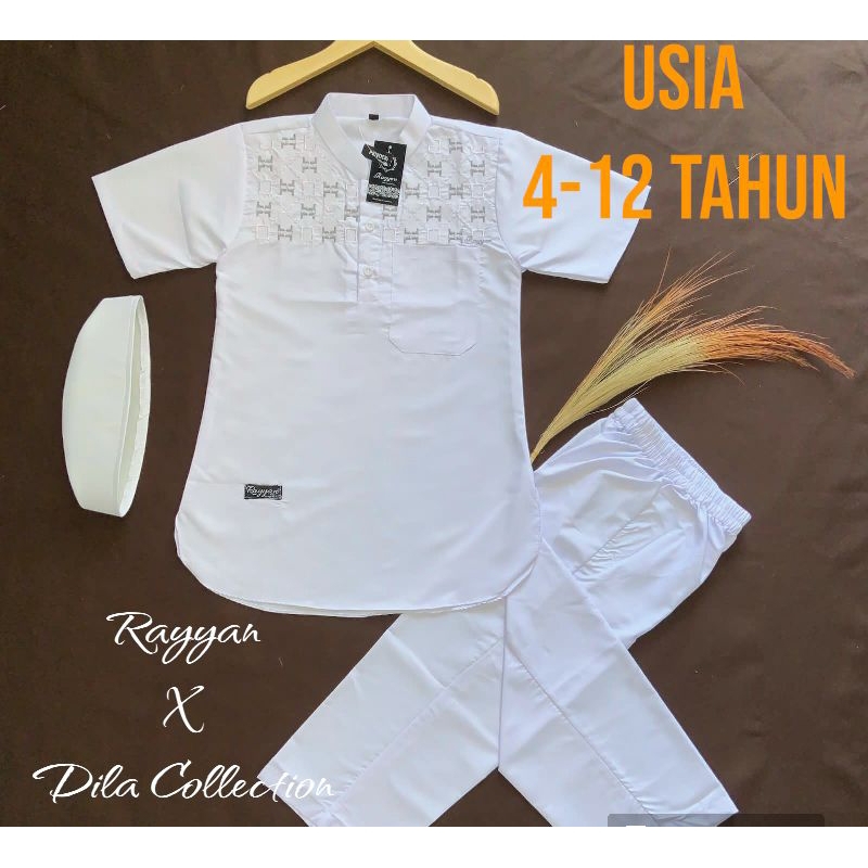 BAJU KOKO ANAK Koko Anak Putih Motif Bordir Abu Rayyan Katun Polimicro