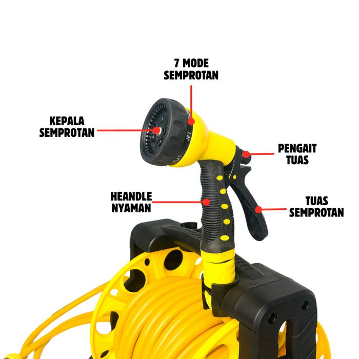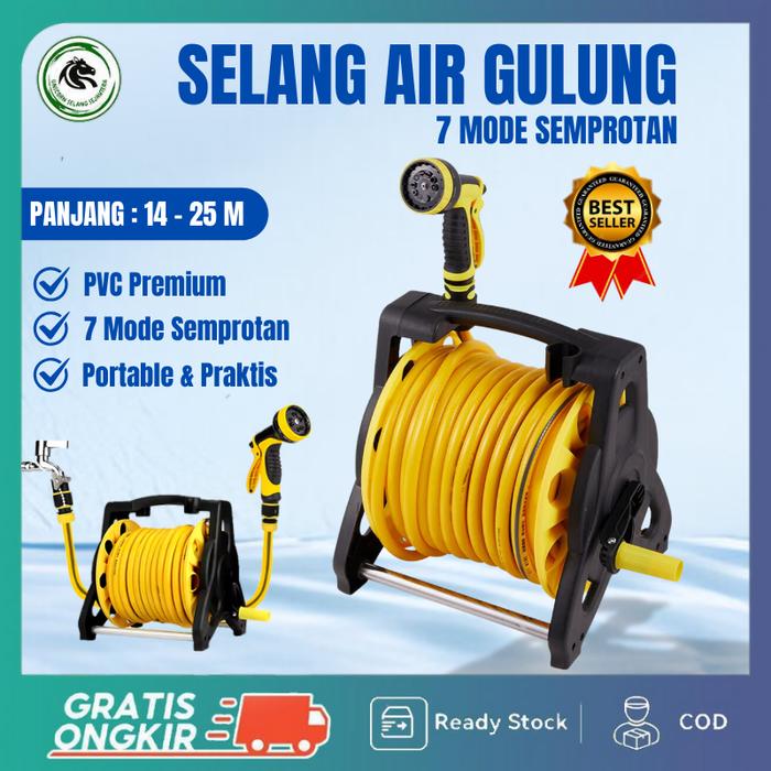 [Mall] SELANG AIR GULUNGAN TAMAN FULL SET 14 & 25 METER ANTI KUSUT GARDEN HOSE REEL TERLARIS - 14 METER, + PENGAIT TEMB