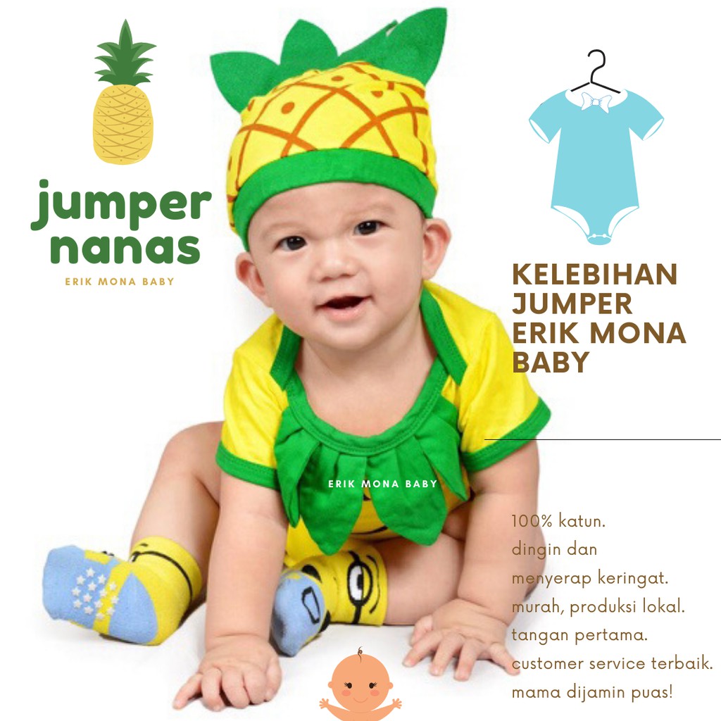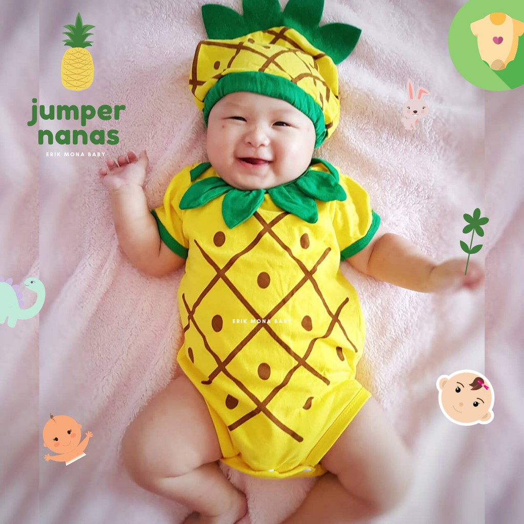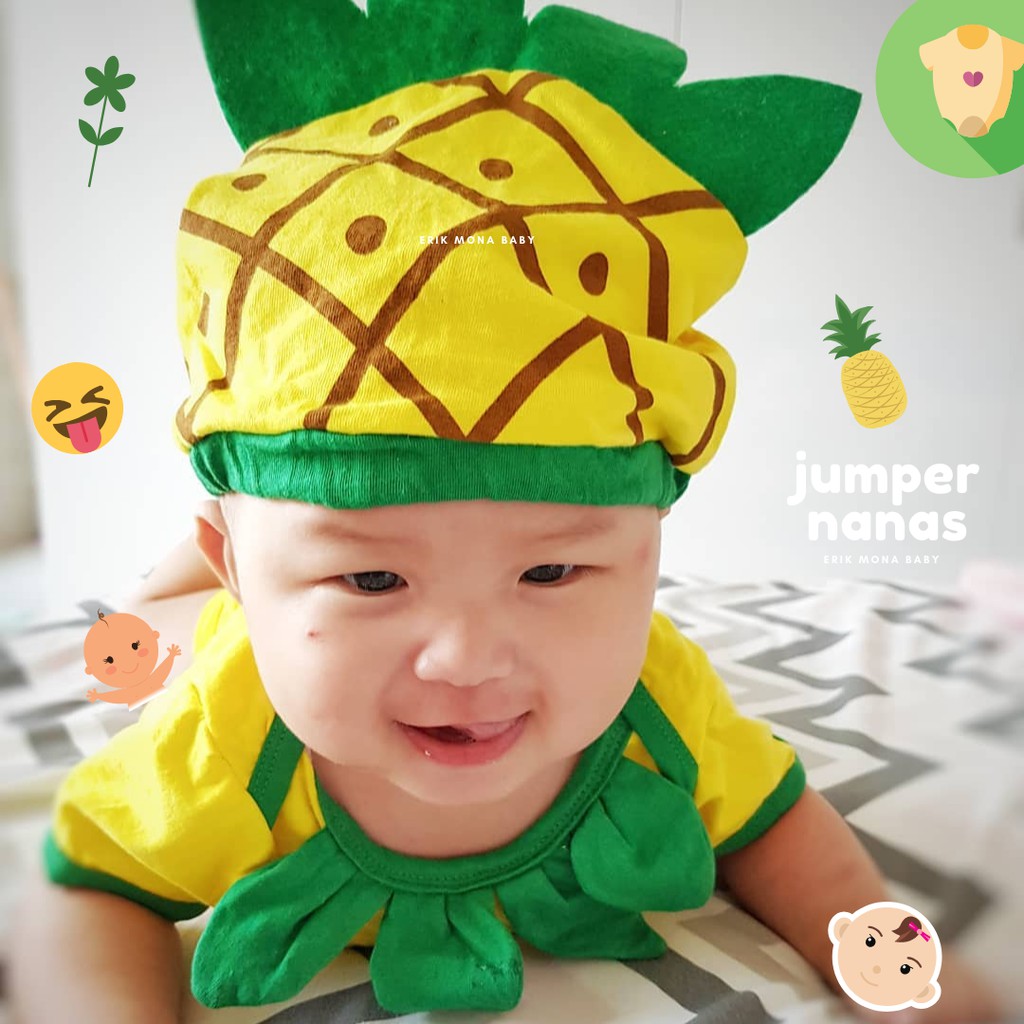 Jumper Bayi Laki Laki Perempuan Jumper Baby Cowok Cewek Lucu Buah Nanas + Topi Usia 0 - 12 Bulan