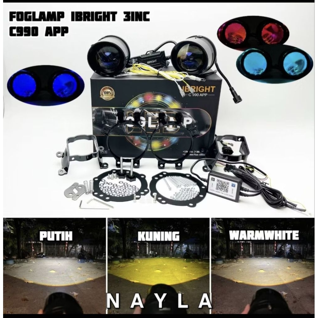 Sepasang Lampu Foglamp IBRIGHT 3 Inc C990 dan ZE FOG 4 APP Blue Lens dengan Bonus Breket Universal