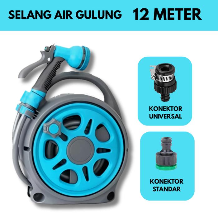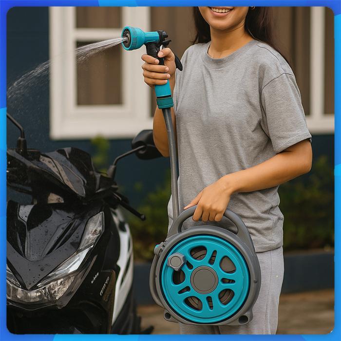 [Mall] SELANG AIR GULUNG SET 12 METER SELANG AIR GULUNG SEMPROTAN AIR WATER HOSE REEL SPRAY GUN DARI SSBO - KRAN MULTIFU