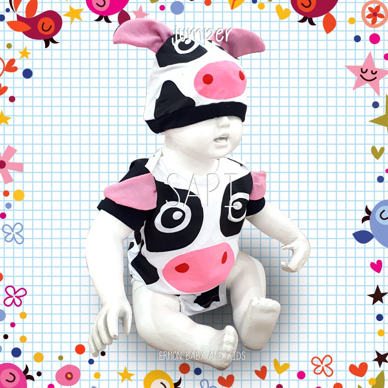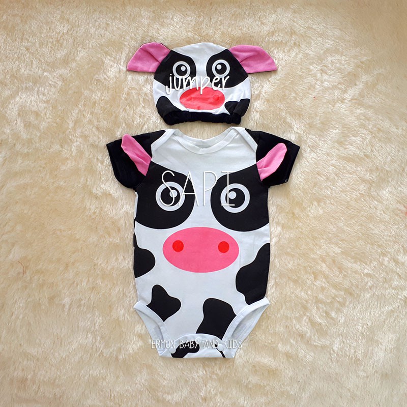Jumper Bayi Laki Laki Perempuan Jumper Baby Cowok Cewek Lucu Karakter Sapi + Topi Usia 0 - 12 Bulan
