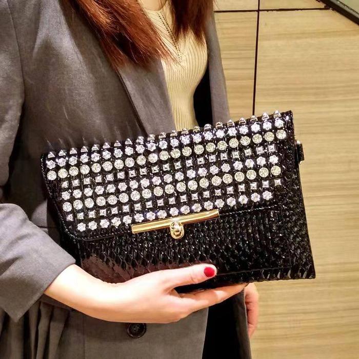 Clutch Pesta Wanita Terbaru 7624-2 Kulit Croco Glossy - G0Ldd