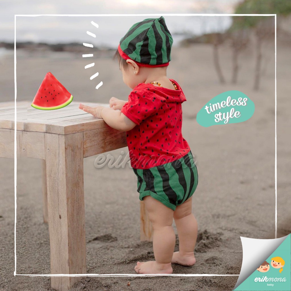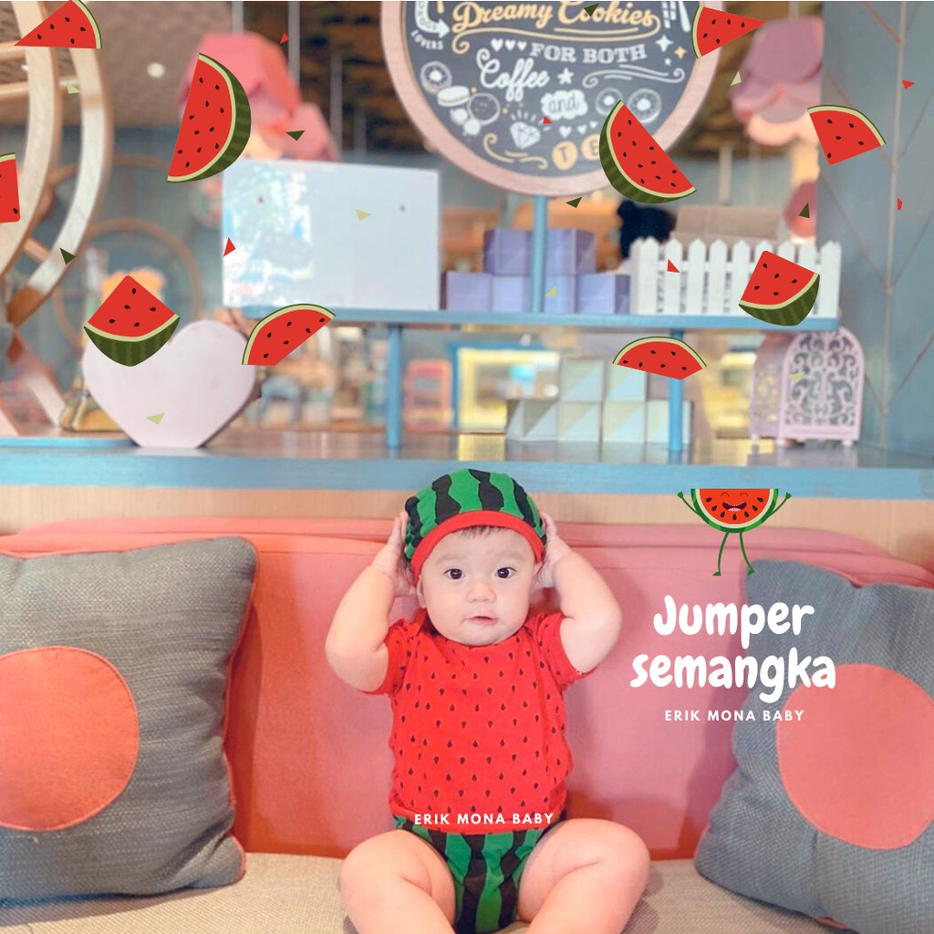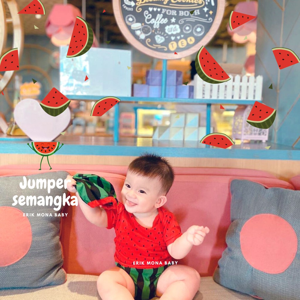 Baju Baby Laki Laki Perempuan Jumper Bayi Motif Buah Semangka Watermelon Lucu usia 0 - 12 Bulan