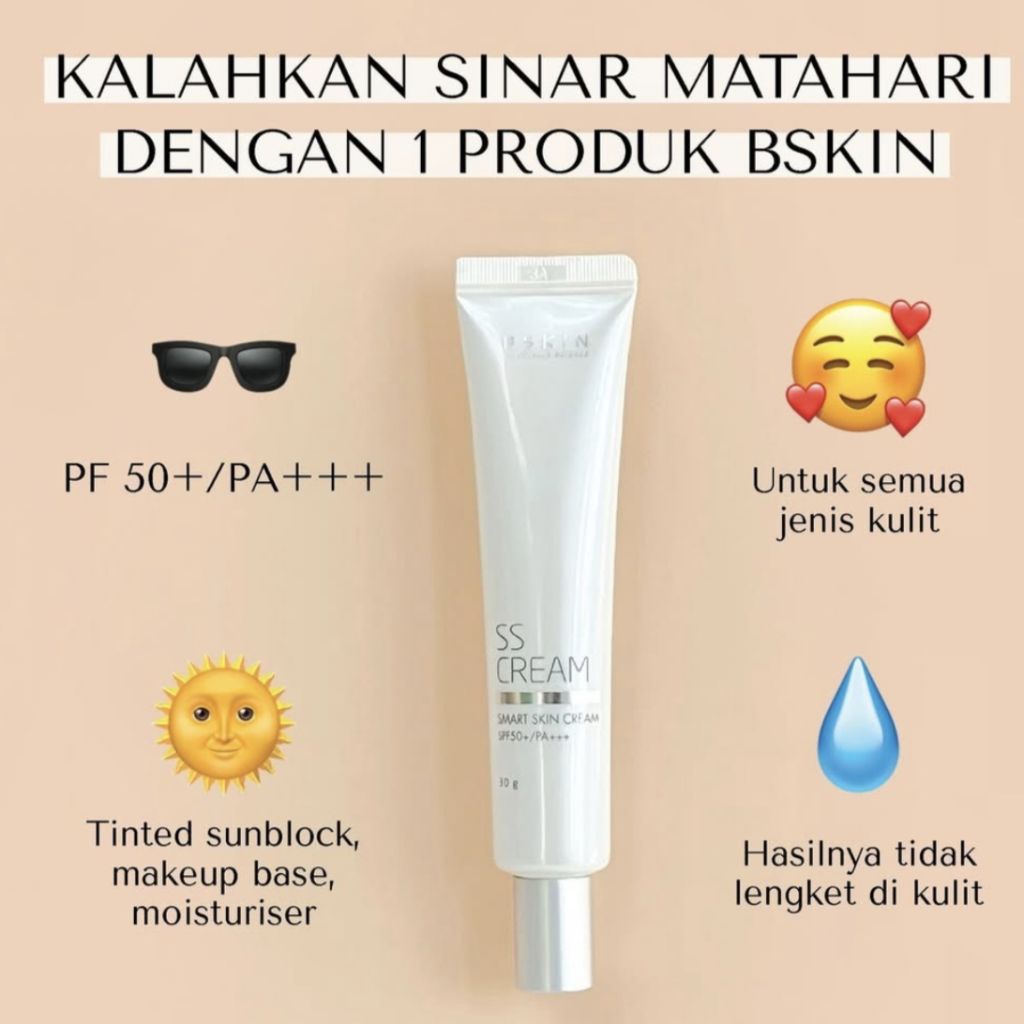 Hdi Bskin SS Cream 30gr 15gr sunblock spf 50+/pa+++ foundation ringan skincare make up smart skin cream