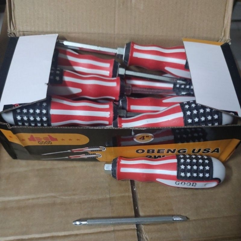 OBENG BOLAK BALIK GAGANG KARET USA 2 WAY 1 KOTAK 12 BUAH
