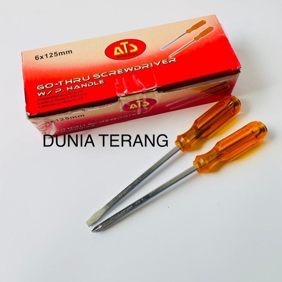 ATS Obeng Gagang Plastik Magnet 5'' 5in 5inch (+) (-) - Obeng Tembus gg Plastik Kuning - Obeng Ketok ATS Panjang Pendek