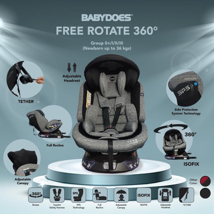 Carseat Car Seat Babydoes Free Rotate 360 Isofix / Dudukan Mobil Bayi Kursi Dudukan Mobil - 2.0 Black, Plastic Wrap