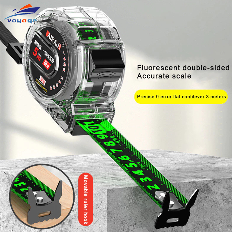 Pita Pengukur Baja 10/5M Penggaris Fluoresensi Transparan Penggaris Pengukur Presisi Tinggi Meteran Anti Karat