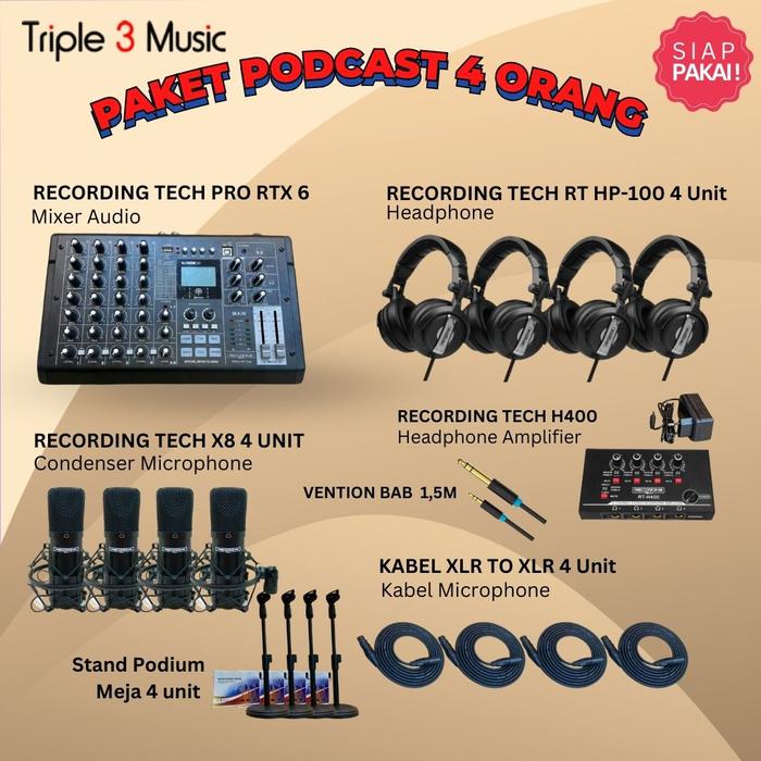 PAKET PODCAST 4 ORANG RECORDING TECH PRO RTX6 MIXER USB WITH HEADPHONE - BM800, PRO RT X6