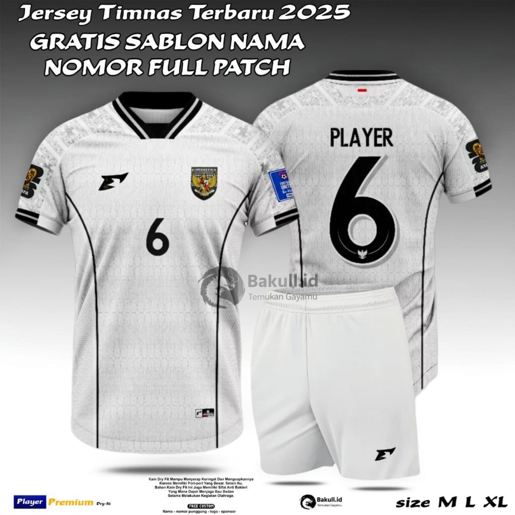 Kaos Setelan Olahraga Jersey Sepakbola Timnas Indonesia 2025 Gratis Sablon Nama Nomor Full Patch Piala Dunia Dryfit Menyerap Keringat Unisex Sport Set Baju Celana