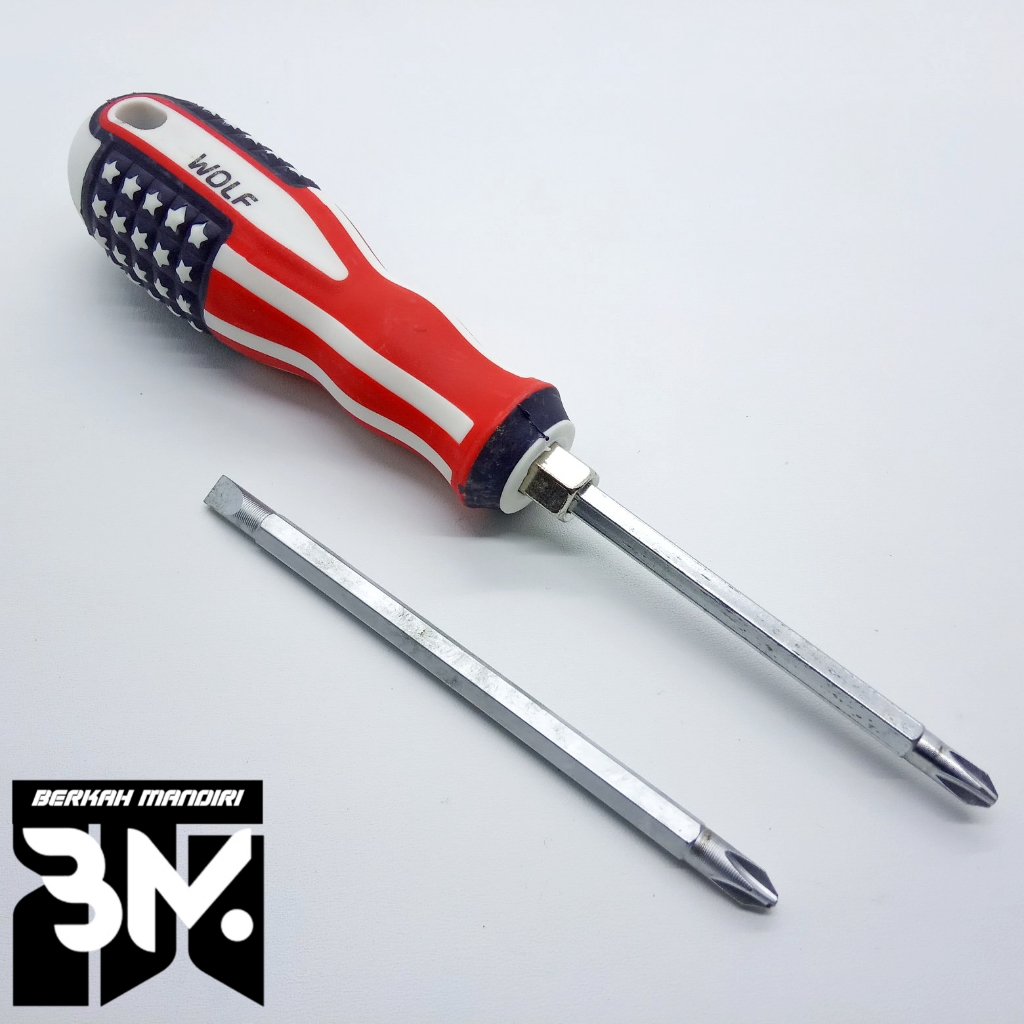 1PCK/12 PCS Obeng Bolak Balik Amerika Magnet Panjang 4"/10cm Plus Minus 2 Way Screwdriver