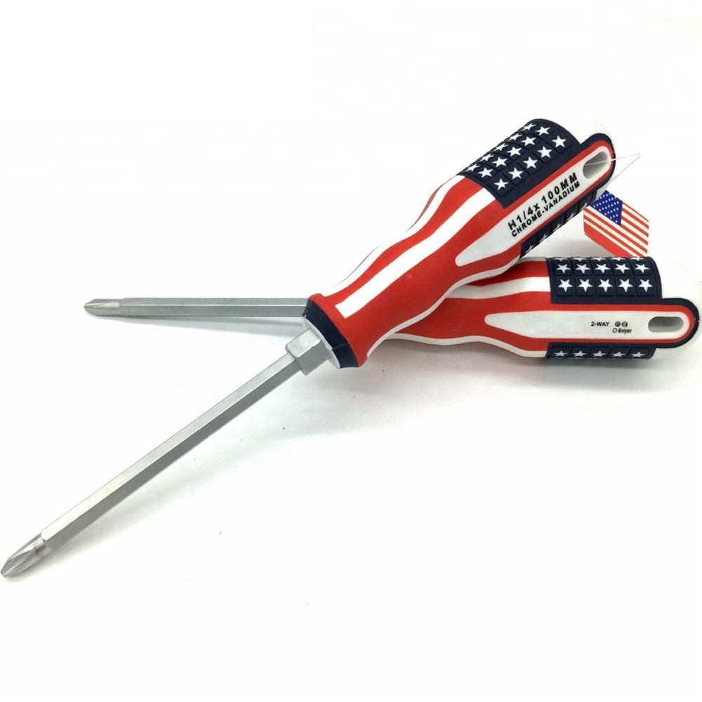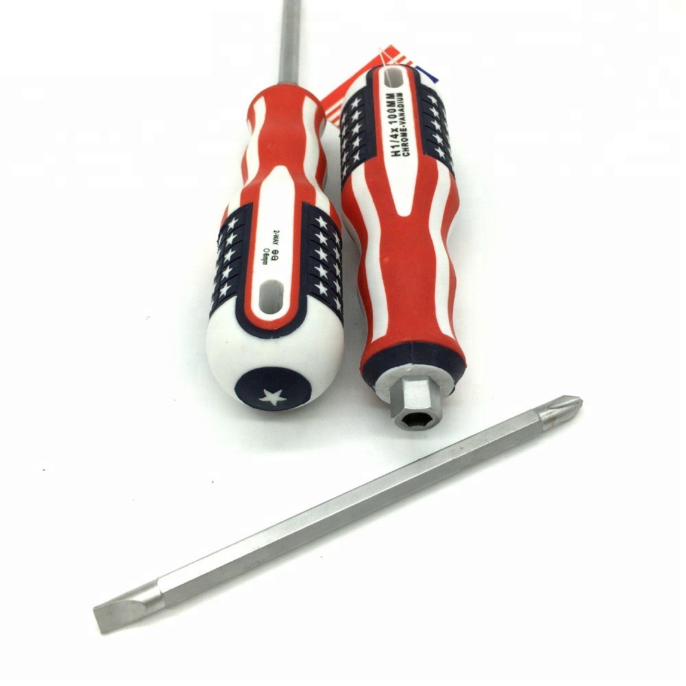 Obeng Magnet Amerika Bolak Balik Gagang Karet 2IN1 8 Inch 2 Way Screwdriver Plus Minus Motif Obeng Kembang Serbaguna