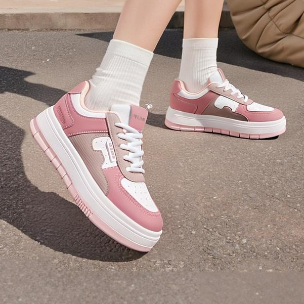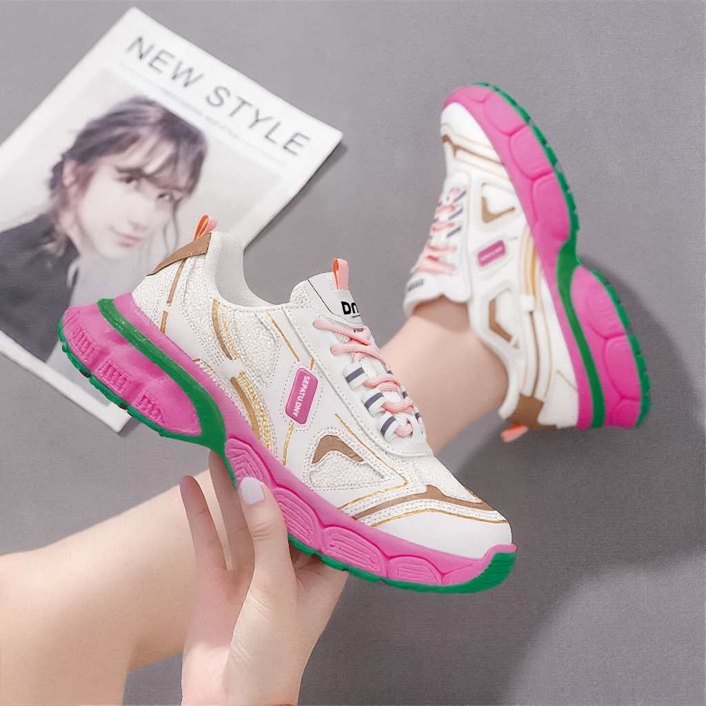 Sepatu DNY Sneakers Pink Wanita Sepatu Warna Pink Cewek Women Shoes Kekinian Sneakers Casual BTS003