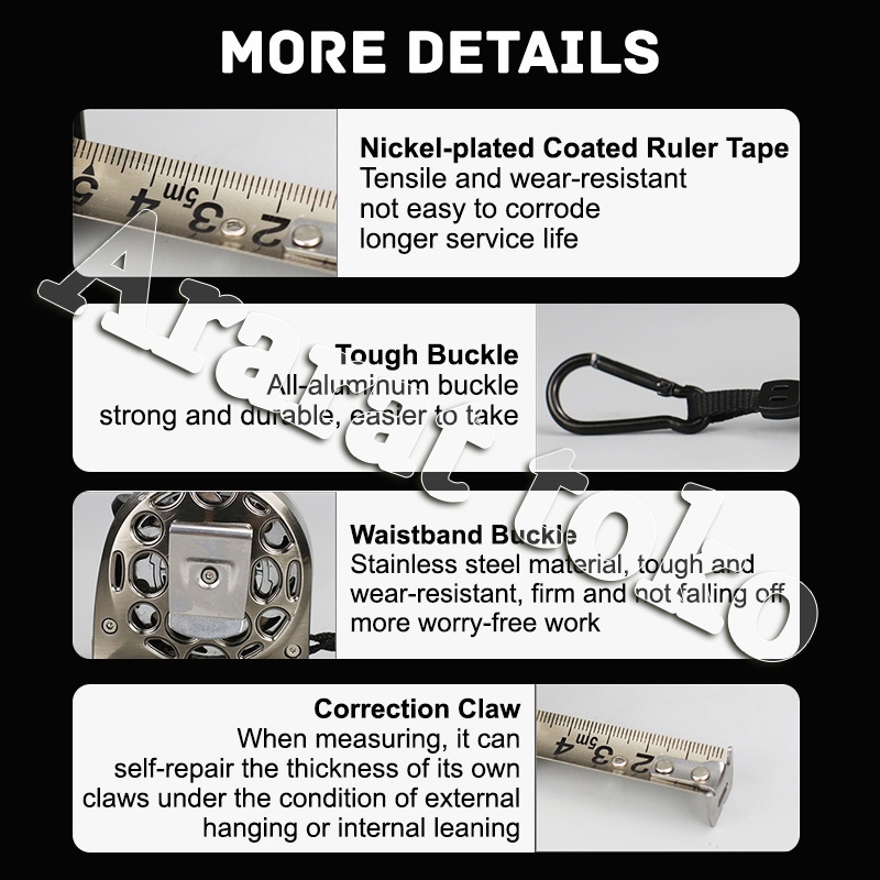 Pita Pengukur Kelas Industri Presisi Tinggi Baja Tahan Karat Tebal Neon Tahan Air 3M/5M/10M Alat Pengukuran Tinggi Peker