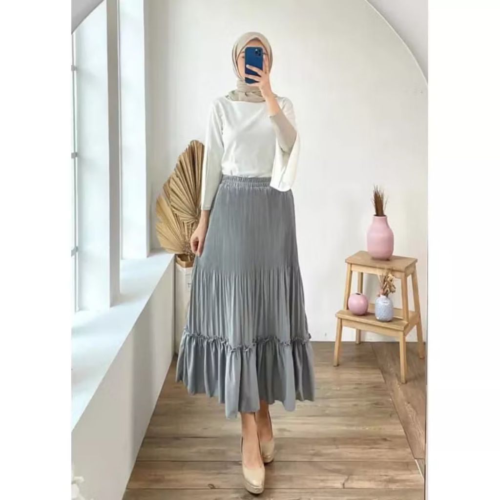 rok ml Kabira - PLEATED SKIRT - Rok Plisket Cabang Wanita - Layer SKirt Premium Pleats Karet Fit to XL