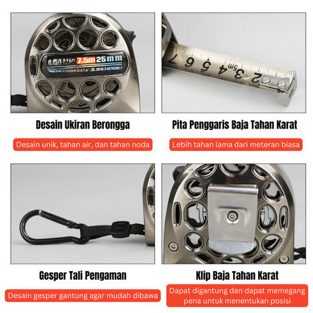 Alat Ukur Meteran Roll 3m/5m/7.5m Panjang Stainless Tebal/Meteran Pengukur Kelas Industri Presisi Tinggi/Alat Ukur Meter
