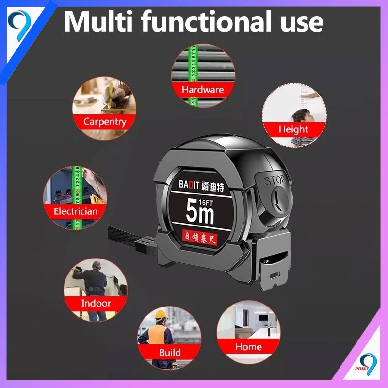 Pita Pengukur Kelas Industri Presisi Tinggi Baja Tahan Karat Tebal Neon Tahan Air 3M/5M/7.5/10M Alat Pengukuran Tinggi P