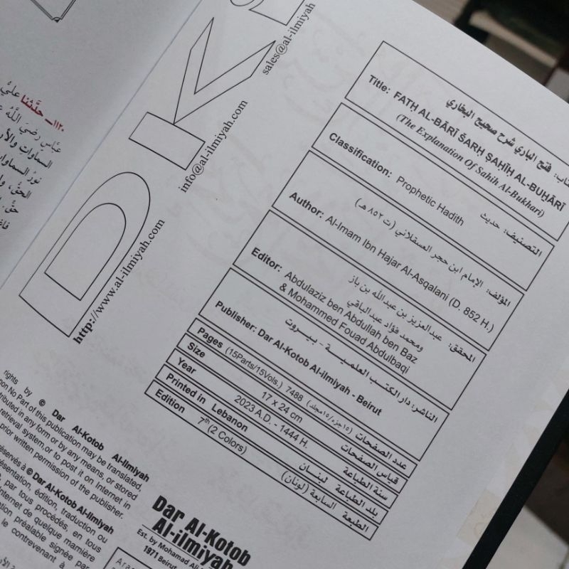Kitab Fathul Bari Syarah Sahihul / Sohihul Bukhari / Bukhori / Buhari 15 Jilid DKI Beirut