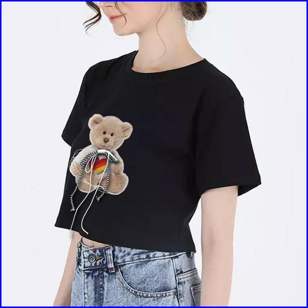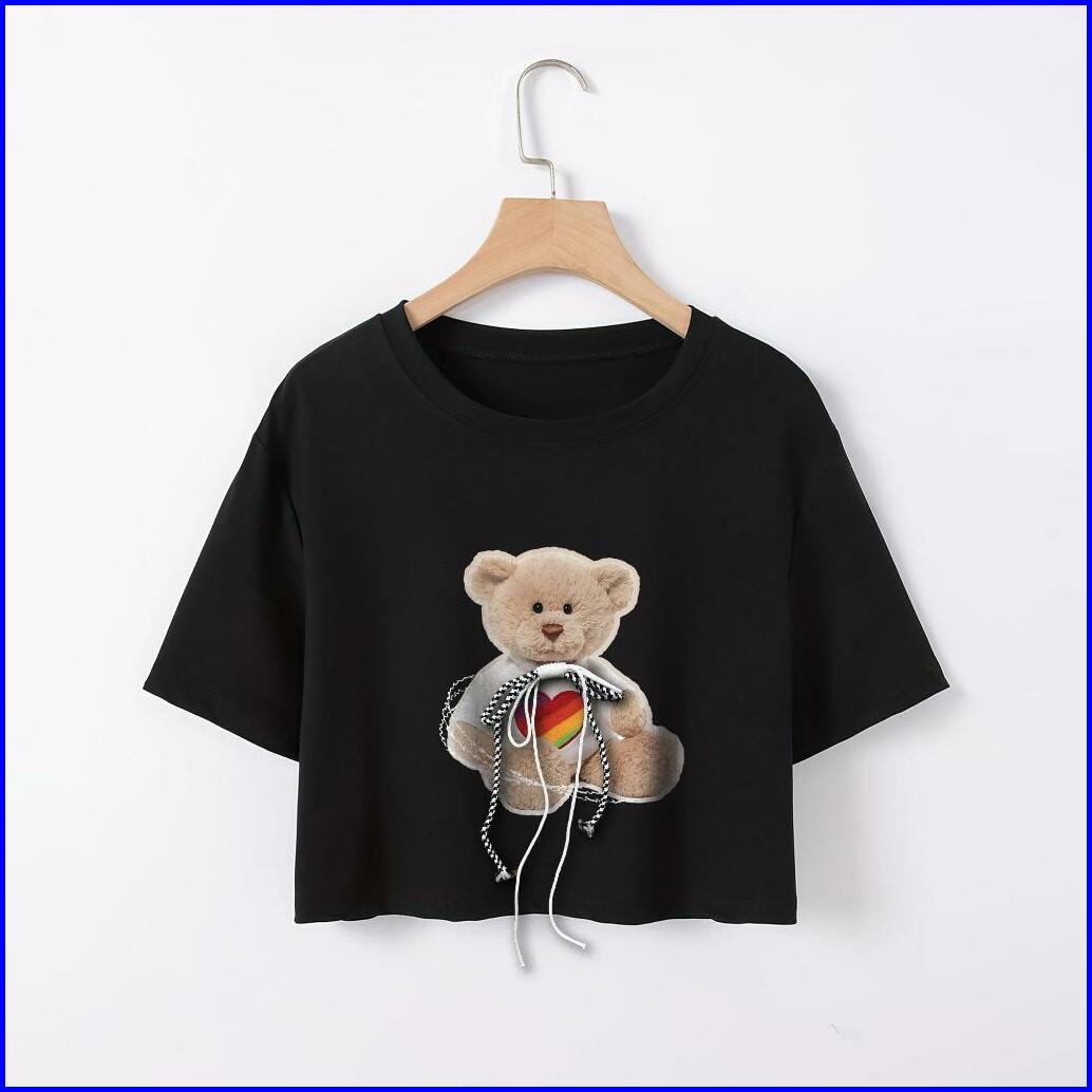 Bsl - 129 Bisalo Kaos Crop Oversize Polos Oversize Crop Top Motif Roping Bear V2 Cotton Combed Soft Printing T-shirt Wan