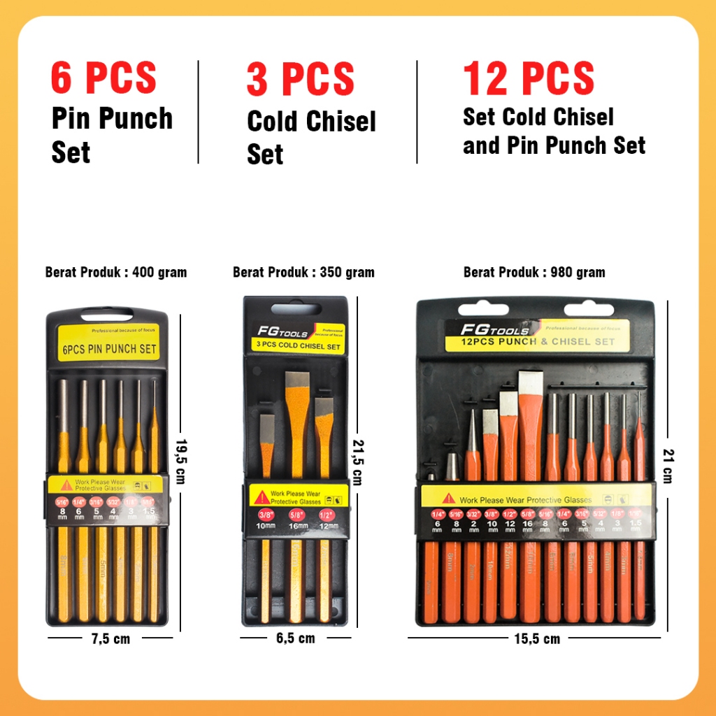 pahat betel punch chisel set isi 3 PCS 6 PCS 12 PCS / Penanda Pin Set