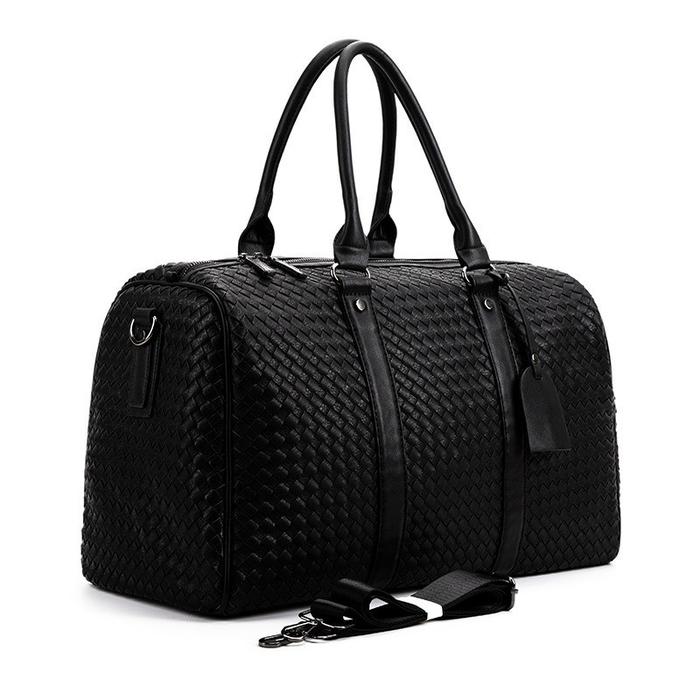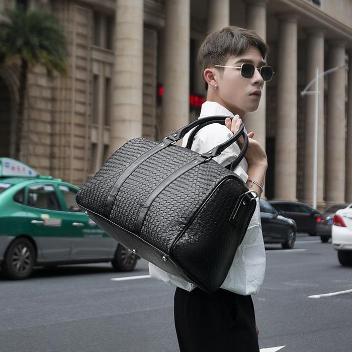 Leather Concept Hitman Tas Travel Bag Pria Bahan Kulit Anyaman Hitam Mudik - Hitam