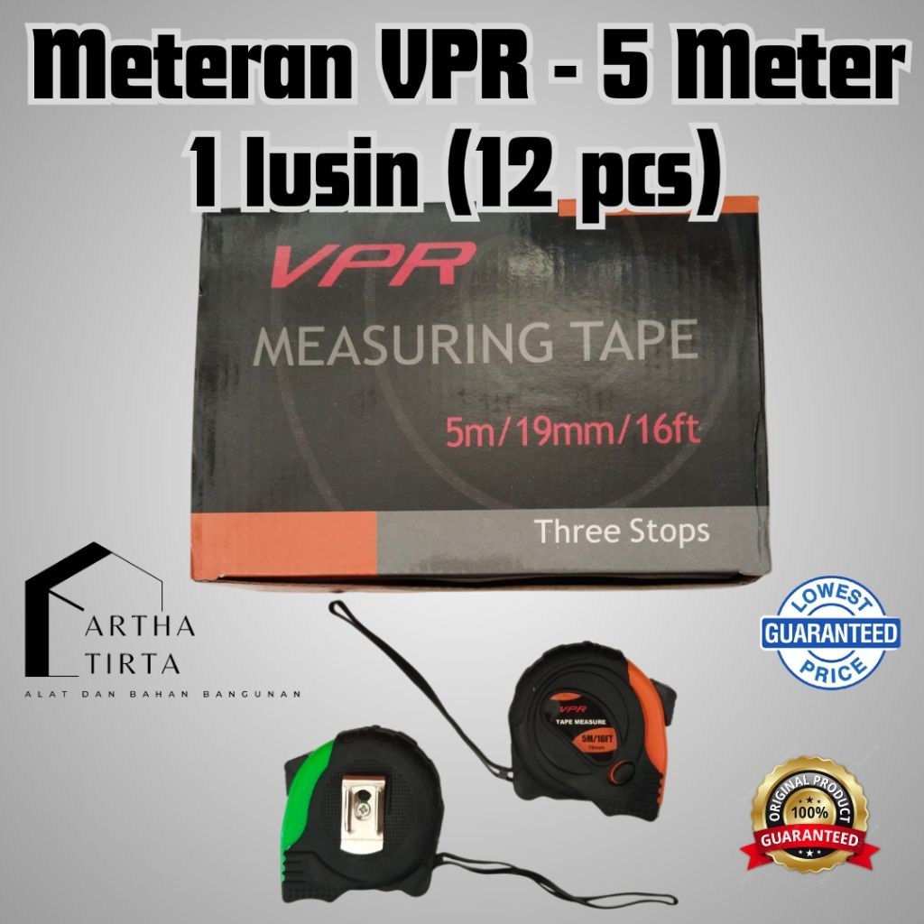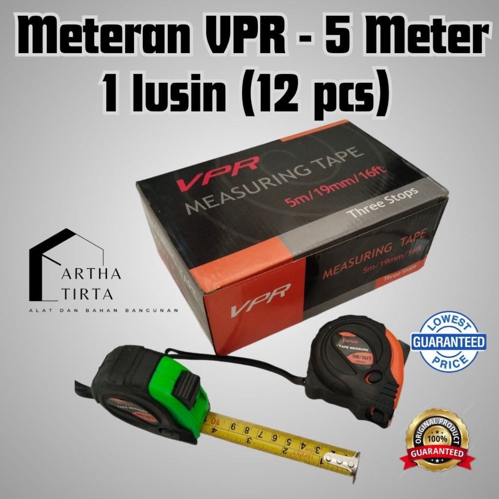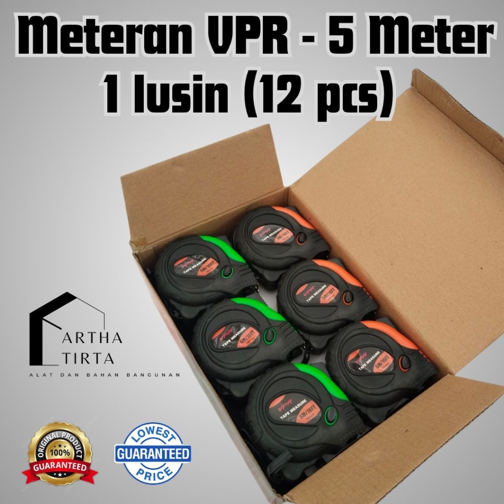 1 LUSIN Meteran Karet 5 Meter VPR / Meteran Bangunan / Measuring Tape Lapis Karet 5M 5 M