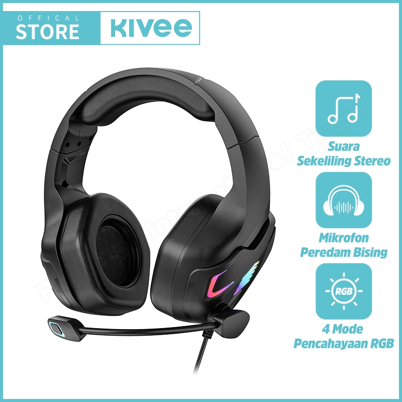 KIVEE Headphone Gaming Profesional RGB HIFI 9D KV-MT126 For Game skala besar garansi asli 2 tahun