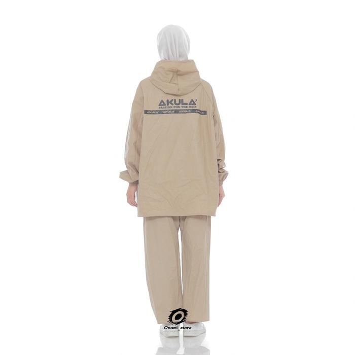 BEST SELLER AKULA Jas Hujan Pria Wanita Setelan Baju dan Celana Anti Rembes - Mocca L
