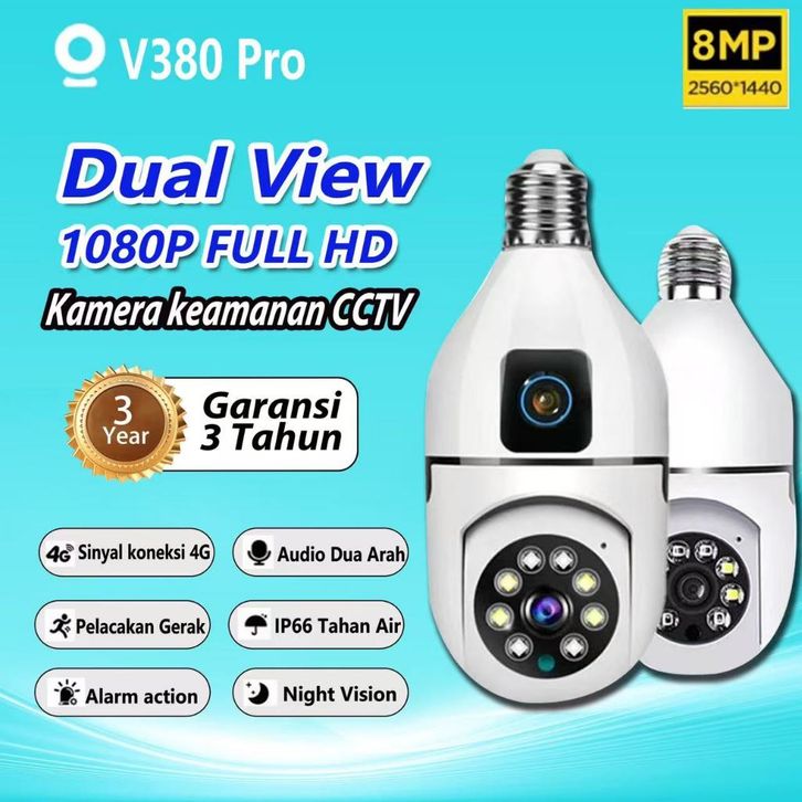 PROMO V380 Pro Kamera CCTV Bohlam Dual Lensa 8MP Alarm Deteksi Manusia AI Penglihatan Malam Inframerah ogimnmn