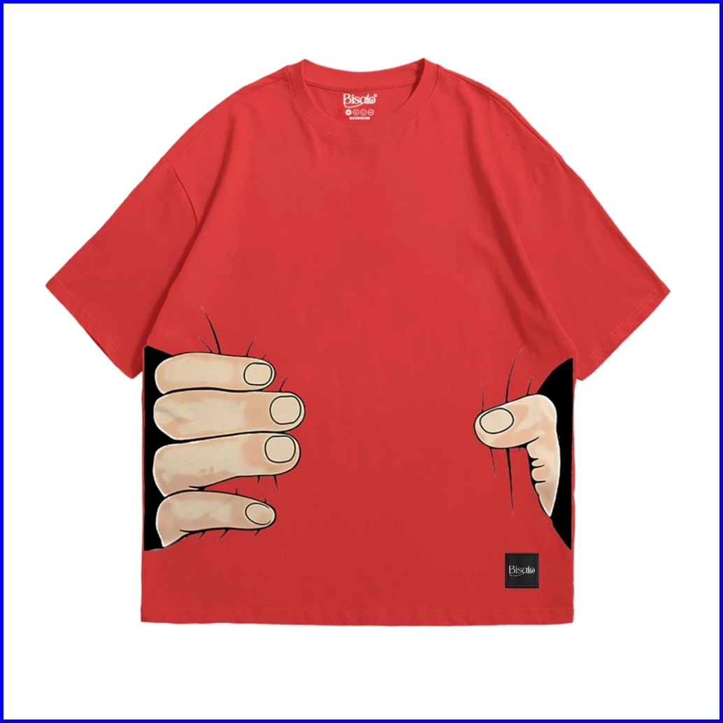 Bisalo T-shirt Oversize Motif Squeeze Cotton Combed 24 S Red