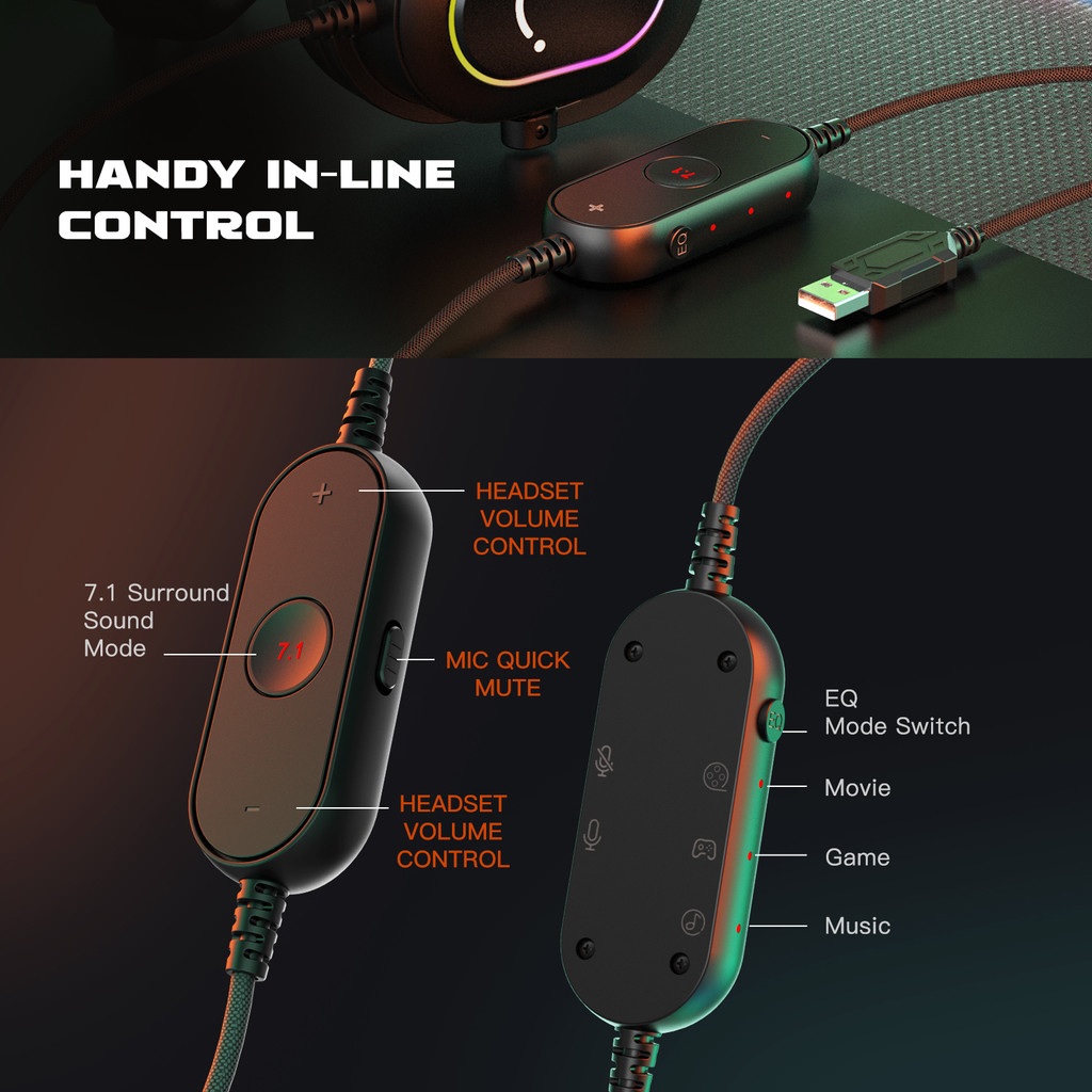 Fifine H6 Headphone Gaming Headset Gaming Headphone RGB 7.1 Audio with Detachable Mic