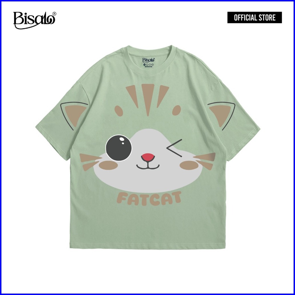 Bsl - 152 Bisalo Baju Kaos Pria Wanita Lengan Pendek Motif Fat Cat Digital Printing Kaos Distro Combed Atasan - Pakaian