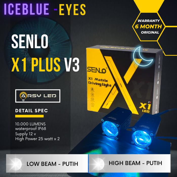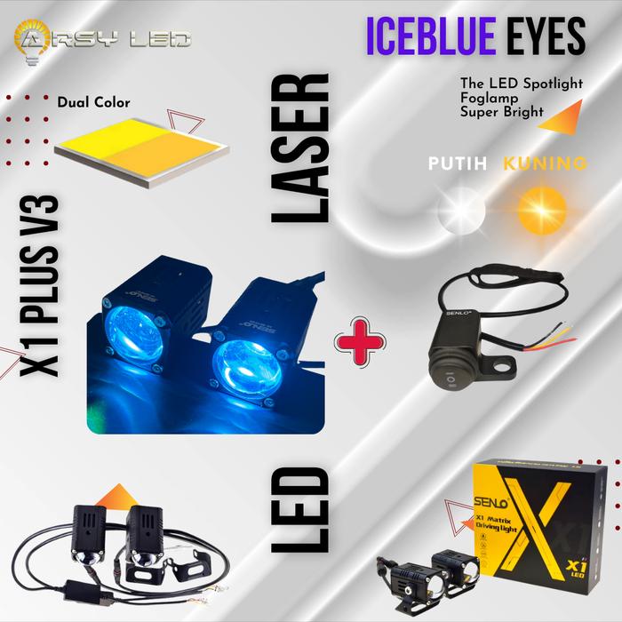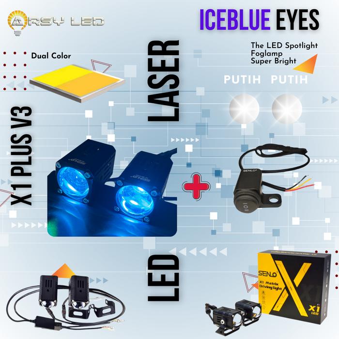 MINI LASER SENLO X1 PLUS V3 ICEBLUE ANGEL EYES LAMPU LED MOTOR MOBIL KABUT FOGLAMP SOROT 25W CAR - 2X1+PUTPUT+EYE