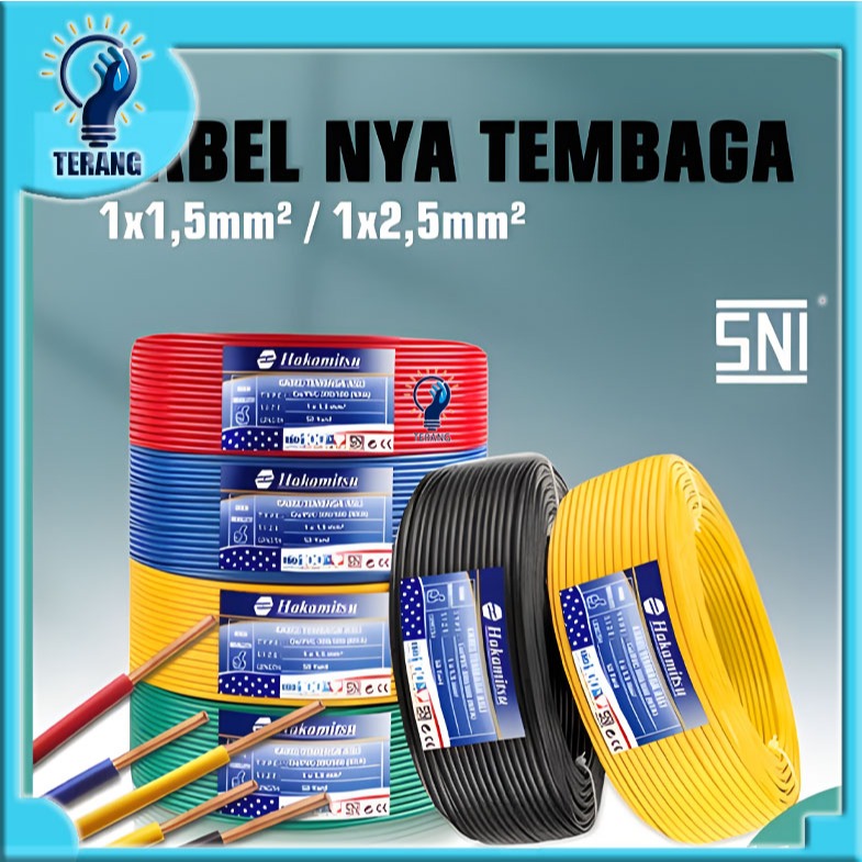 Kabel Kawat NYA 1 x 1,5mm 2,5mm 50 Yard Full / Kabel Listrik Tembaga Murni PVC SNI / Mrek Hakamitsu