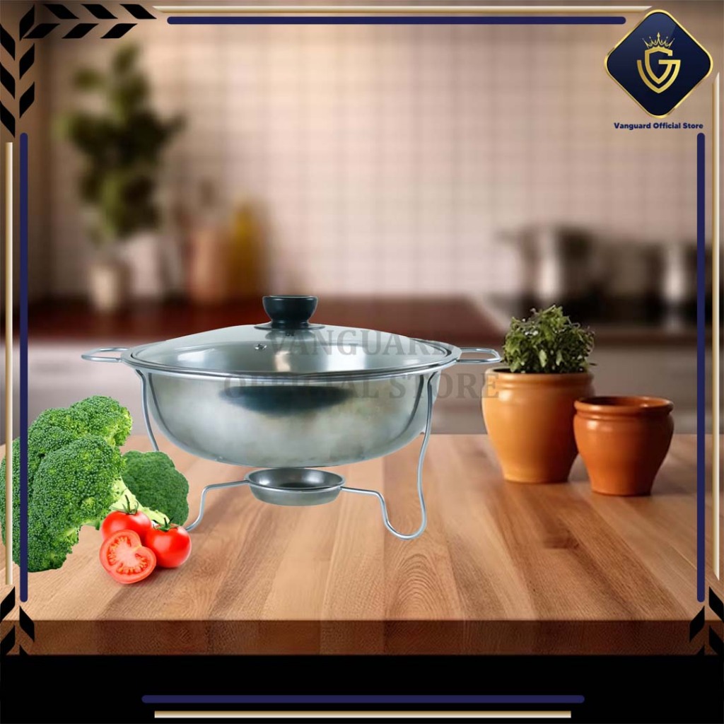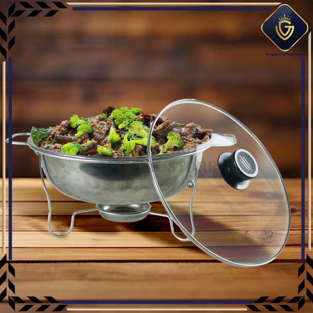 VANGUARD-WADAH PRASMANAN BULAT WARMER STOVE 28CM TEMPAT PRASMANAN STAINLESS TUTUP FULL KACA PERLENGKAPAN DAPUR TERLARIS