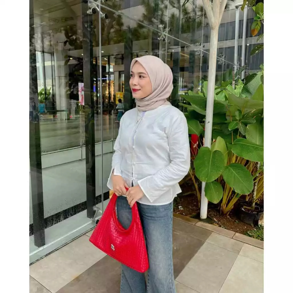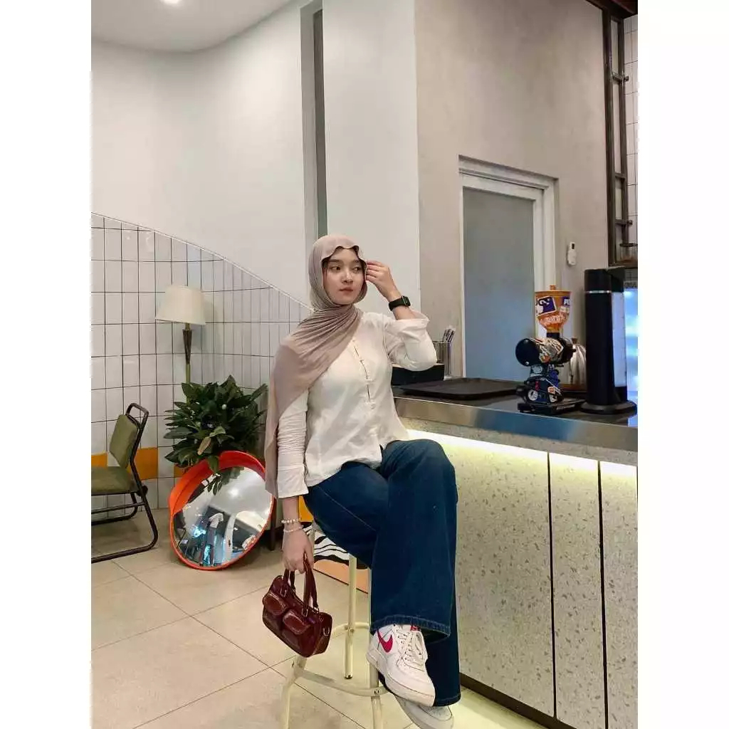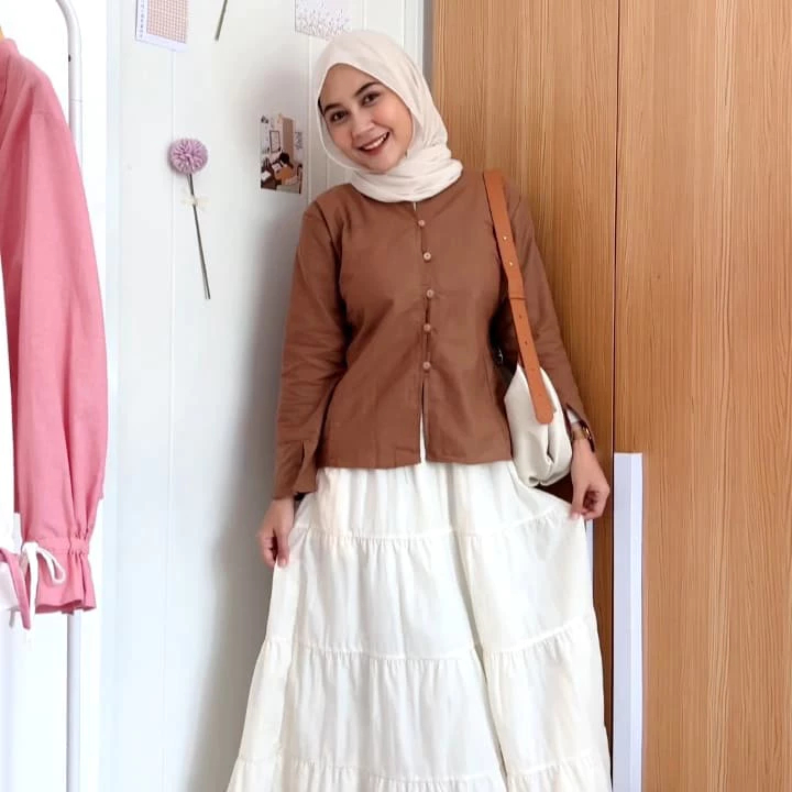 Atasan Wanita Kekinan Enji Linen Series Premium Blouse Wanita Korean Style Lengan Panjang Motif Polos Best Seller Murah