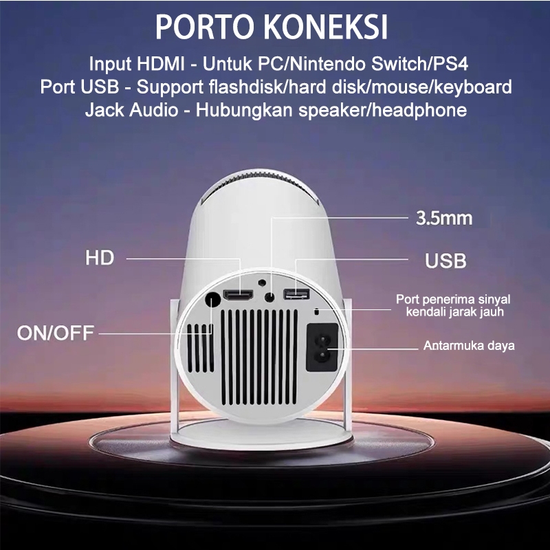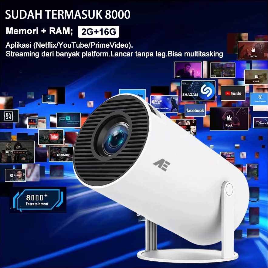 SMART PROYEKTOR ANDROID 13.0 4K YOUTUBE HD MINI INFOCUS PROYEKTOR AUTO KEYSTONE 220 ANSI AE 2G+16G KULITAS PREMIUM