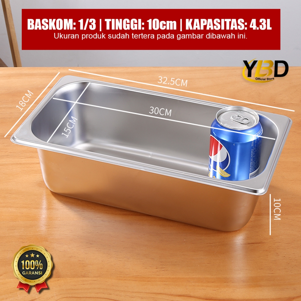 Food Pan Stainless + Tutup lubang 1/3 x 10 cm (32,5 x 17,6 x 10cm)| Panci prasmanan Stainless steel anti karat | wadah m
