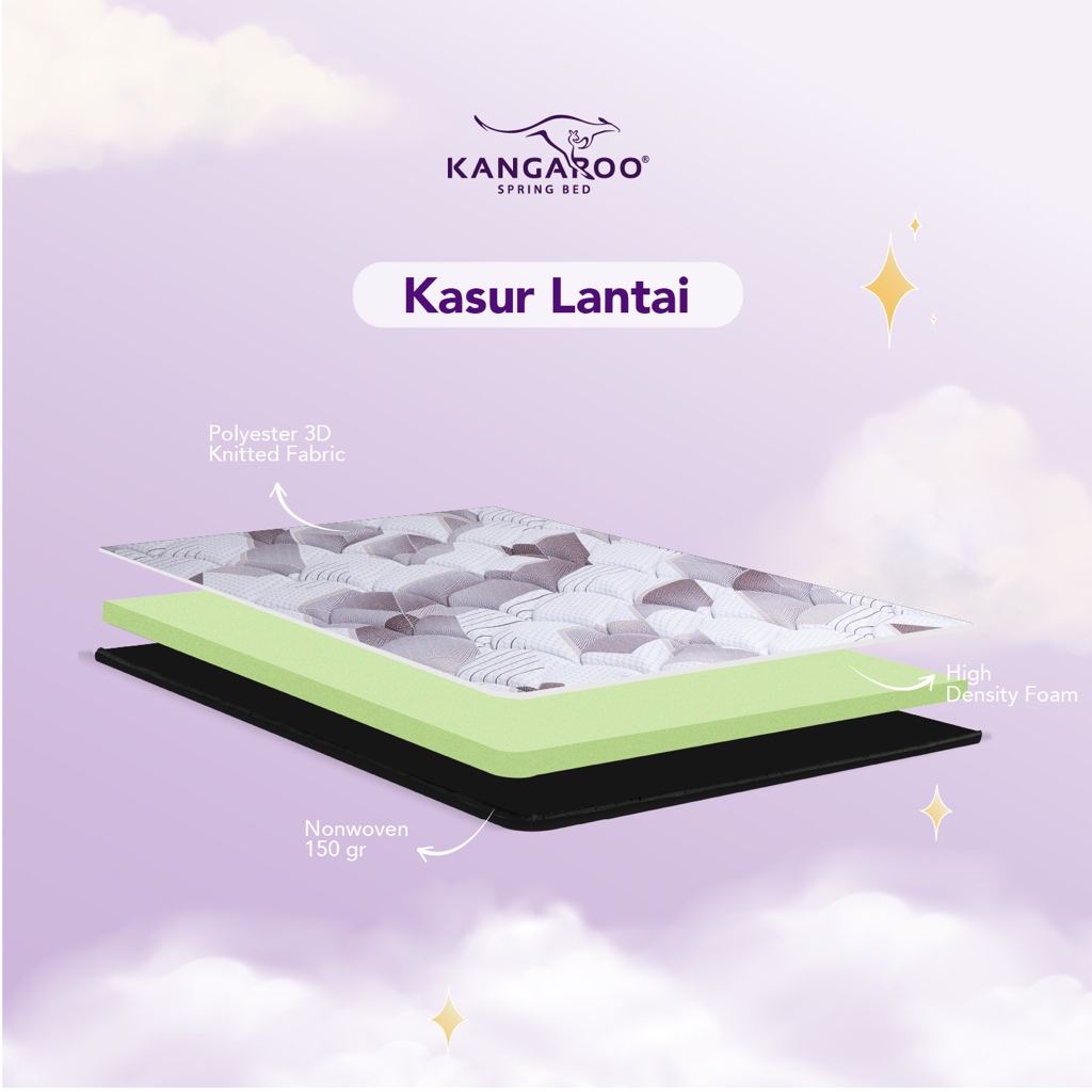 Kangaroo - Kasur Lantai Tebal - Bonus 2 Bantal - Tebal Murah Mewah - Busa Anti Kempes - 160x200