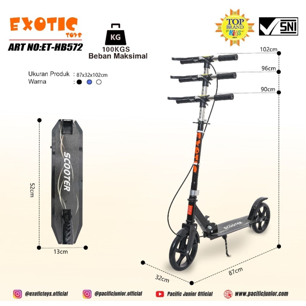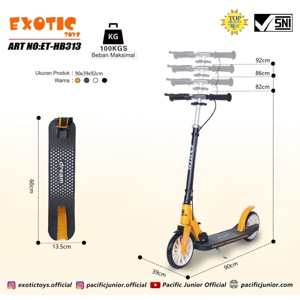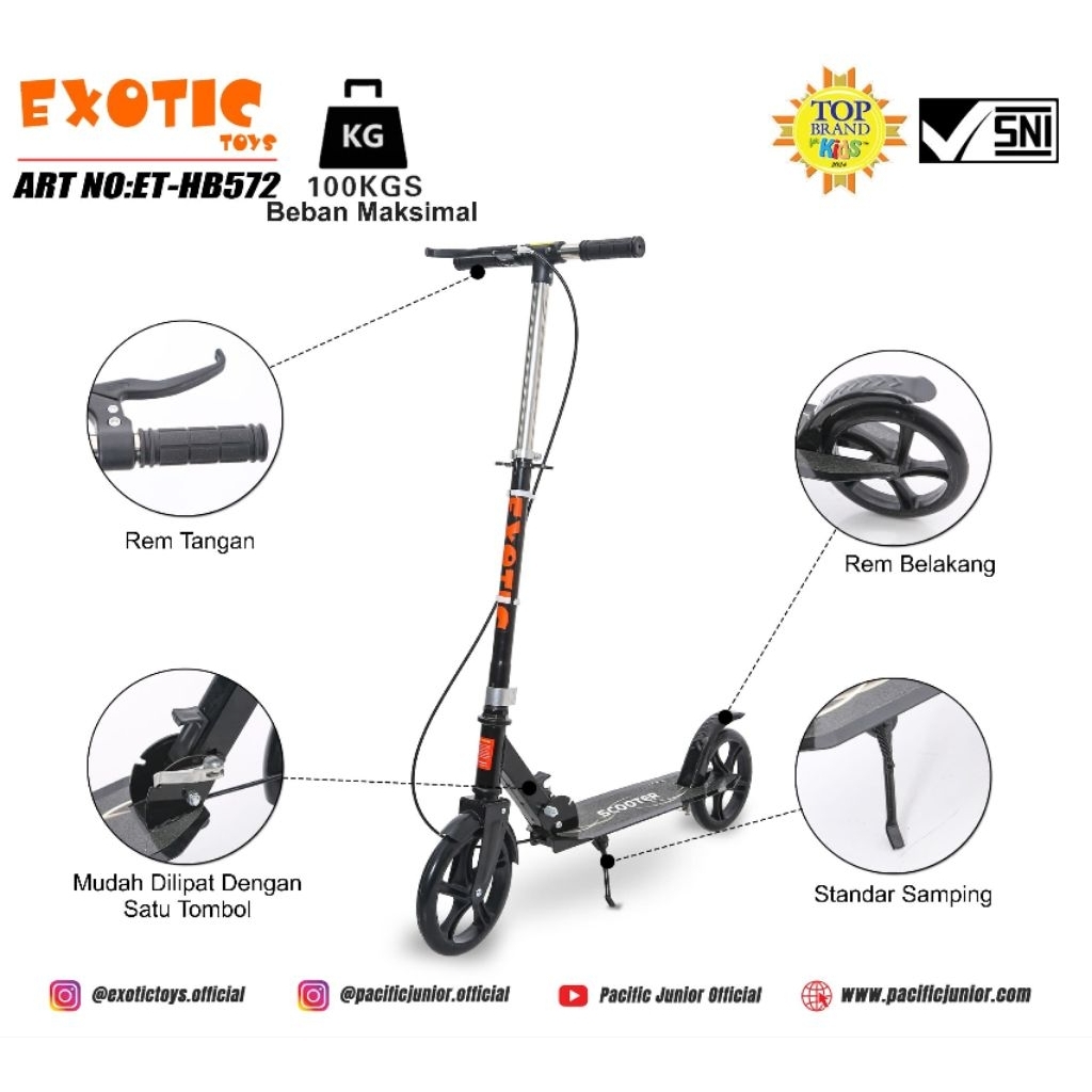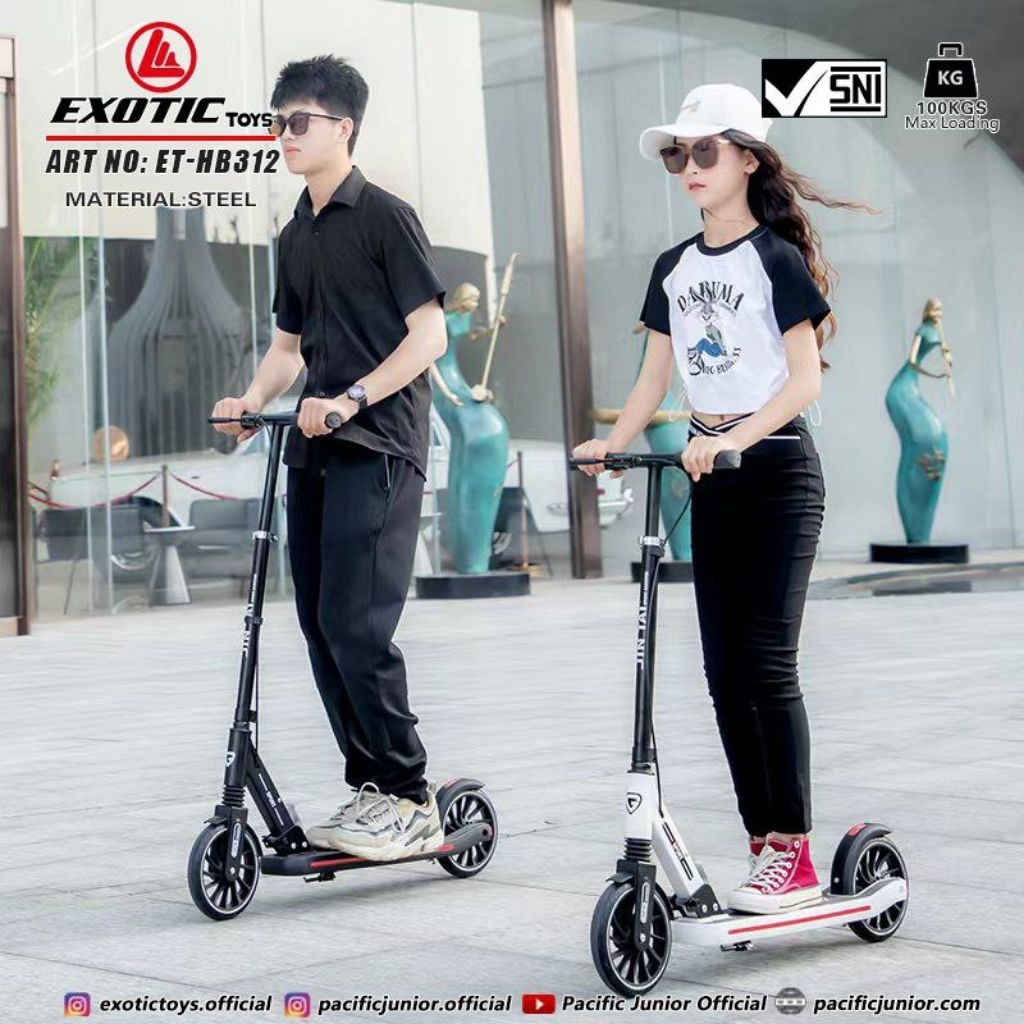 EXOTIC Scooter Otoped Anak & Dewasa – Roda Besar Alloy, Tahan 100kg, Model HB 512 / 572 / 312 / 313 / 305