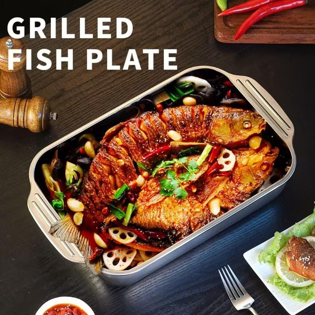 Wadah Prasmanan Stainless 304 Piring Ikan Kompor Induksi Prasmanan Plus Tutup