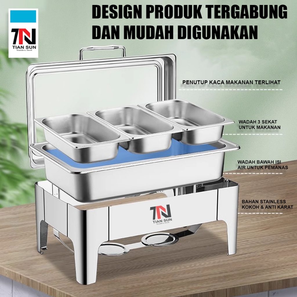Tian Sun Chaving Dish Kaca Besar dan Penutup Hidrolik 90° / Rolltop stainless prasmanan 9L/13L & 6L