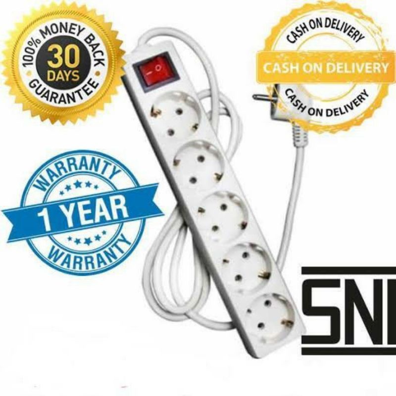Stop Kontak Colokan 2 3 4 5 Lubang Panjang Kabel 1,5M 3M 5M Kuningan SNI