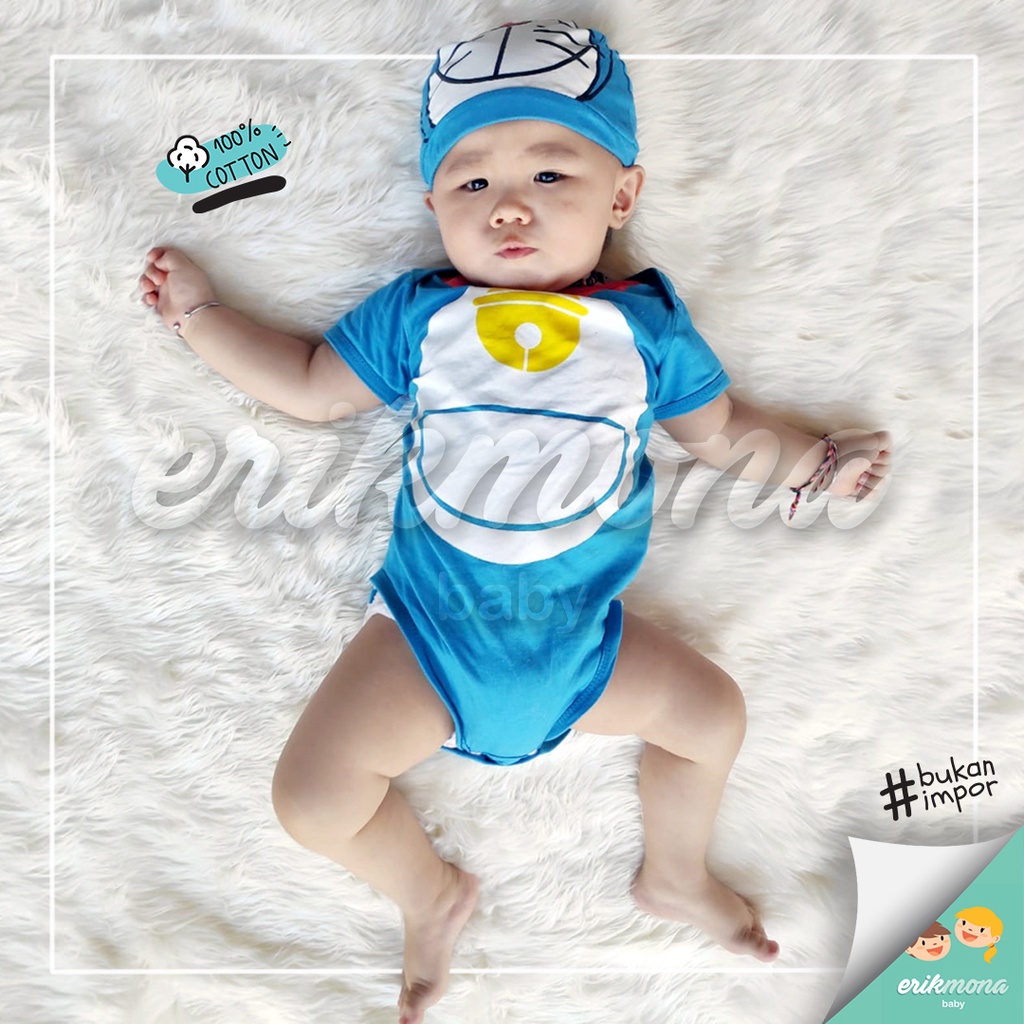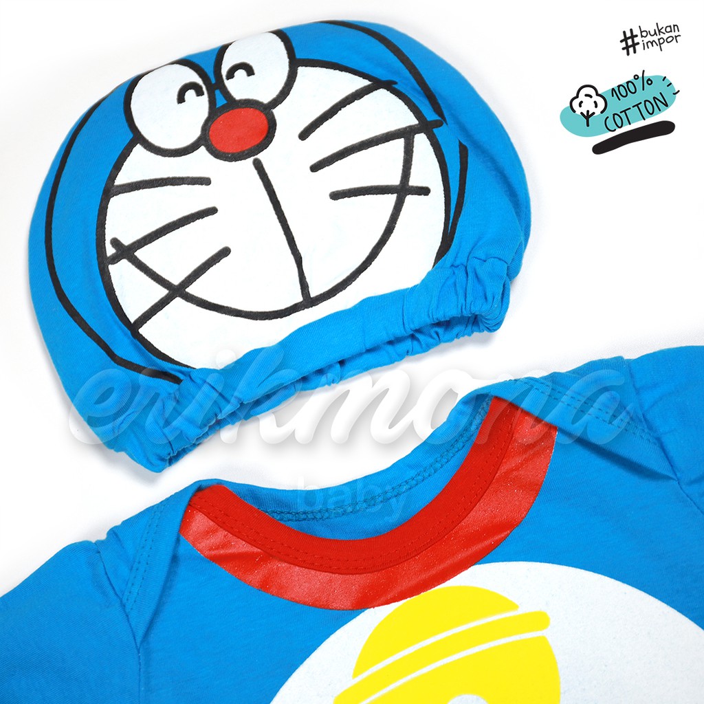 Baju Bayi Laki Laki Perempuan Jumper Baby Lucu Karakter Doraemon + Topi usia 0 - 12 Bulan