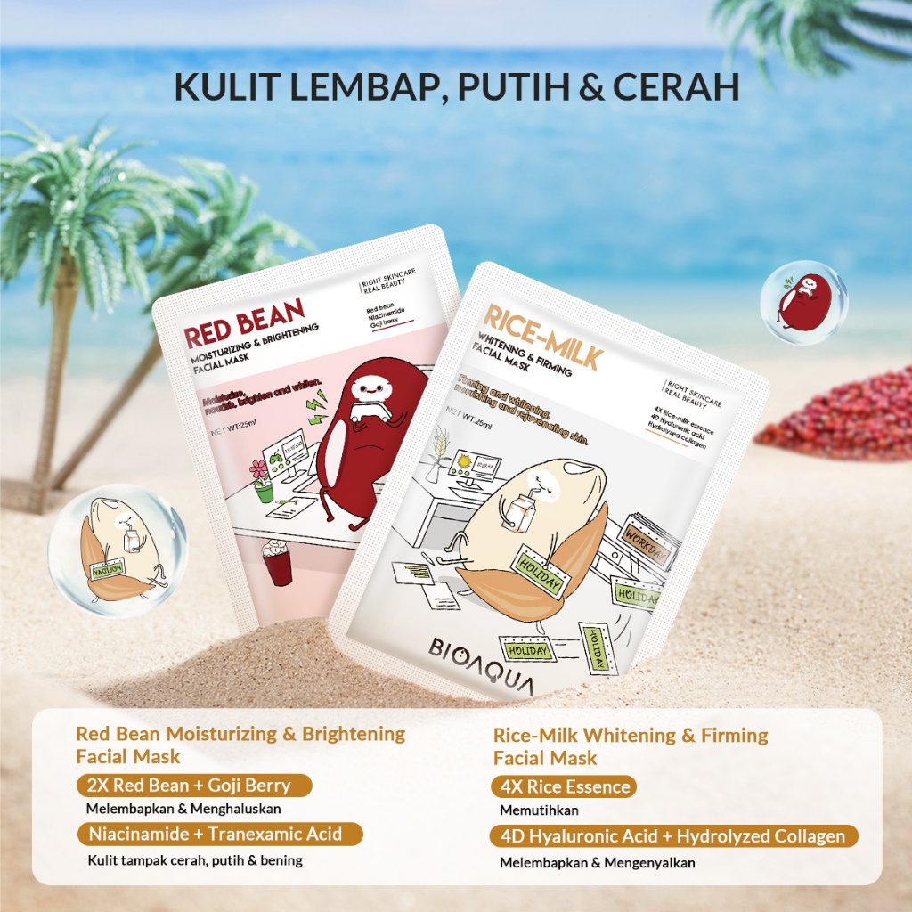 GRATIS ONGKIR | BIOAQUA Masker Wajah Cereal Sheet Mask & Biji Buah Face Mask 25ml Masker Muka Glowing Rice-Milk