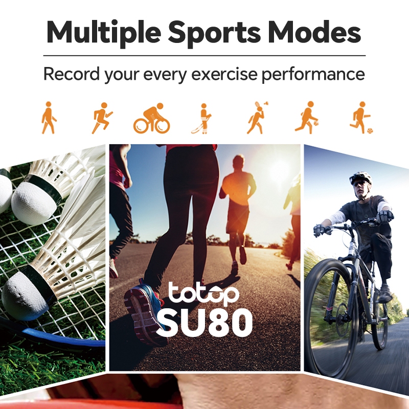 Totop SmartWatch SU80 Sports Bluetooth Smartband 2.20 inch HD Screen Full Touch Bluetooth Call Tangan Sports Flashlight Calculator Custom Wallpaper Music Android IOS Jam