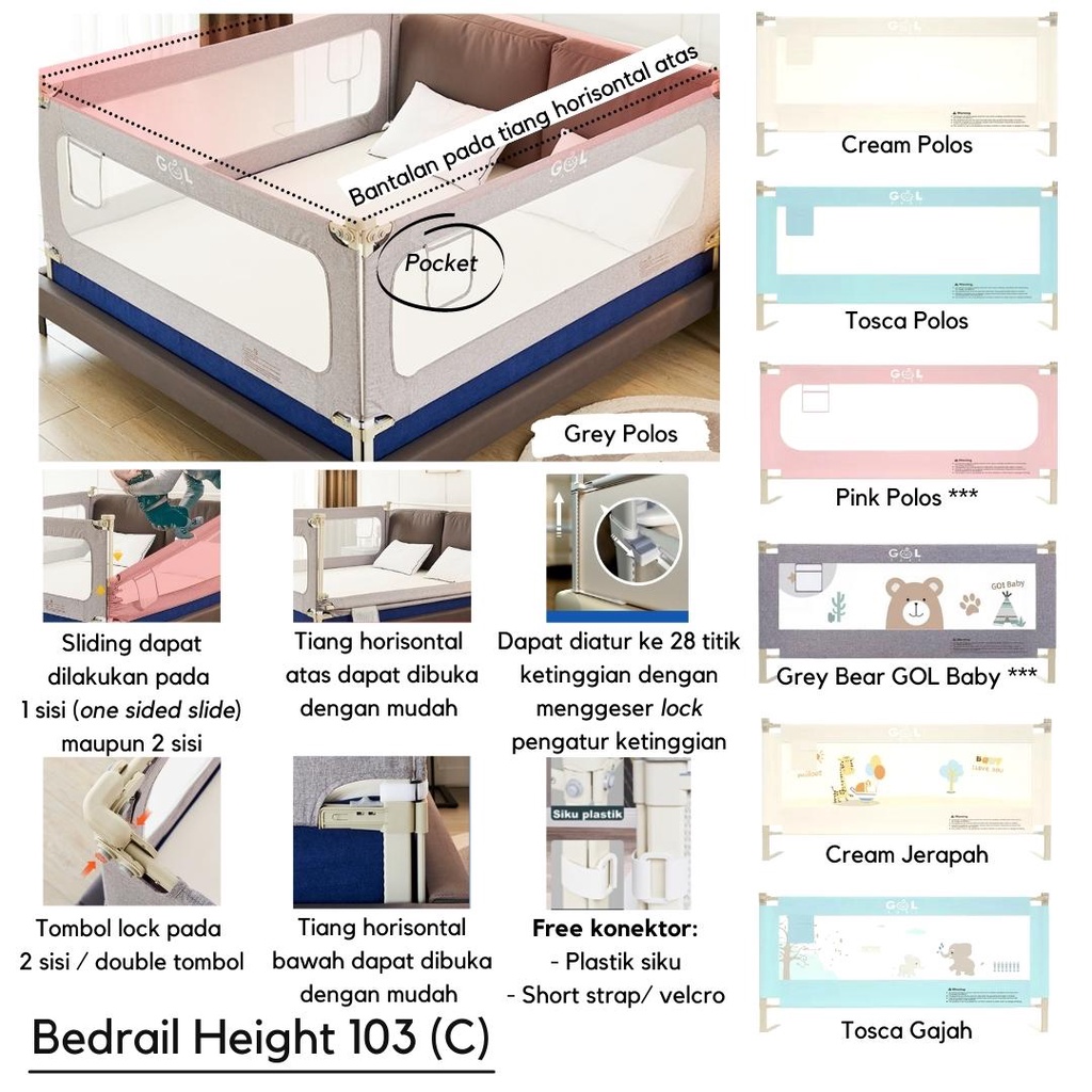 GOL Baby Bedrail Pagar Kasur Pengaman Baby Pembatas Kasur Pagar Bayi Strong & Ekstra Extra Tall Bedguard Fence Pengaman